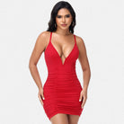 Turn heads with the SHAPERIN Deep V Leather Bodycon Dress, a two-in-one design that blends bold style with sculpting comfort. The outer faux leather layer exudes modern edge, while the built-in shapewear slip smooths and defines your silhouette. Featuring a supportive steel V-wire neckline, adjustable straps, and ruched detailing for a flattering fit, this dress enhances your curves while ensuring all-day comfort and breathability. Perfect for night outs, parties, or any moment you want to feel effortlessly confident.