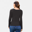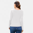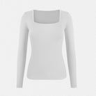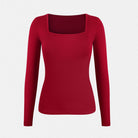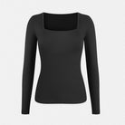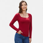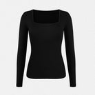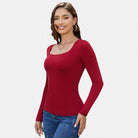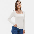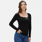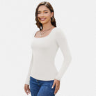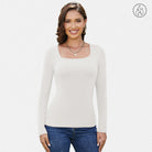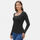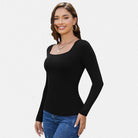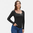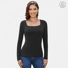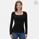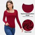 SHAPERIN Women’s Fleece-Lined Long Sleeve Square Neck Ribbed Top