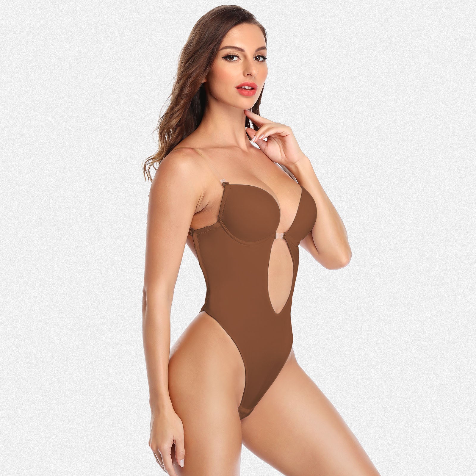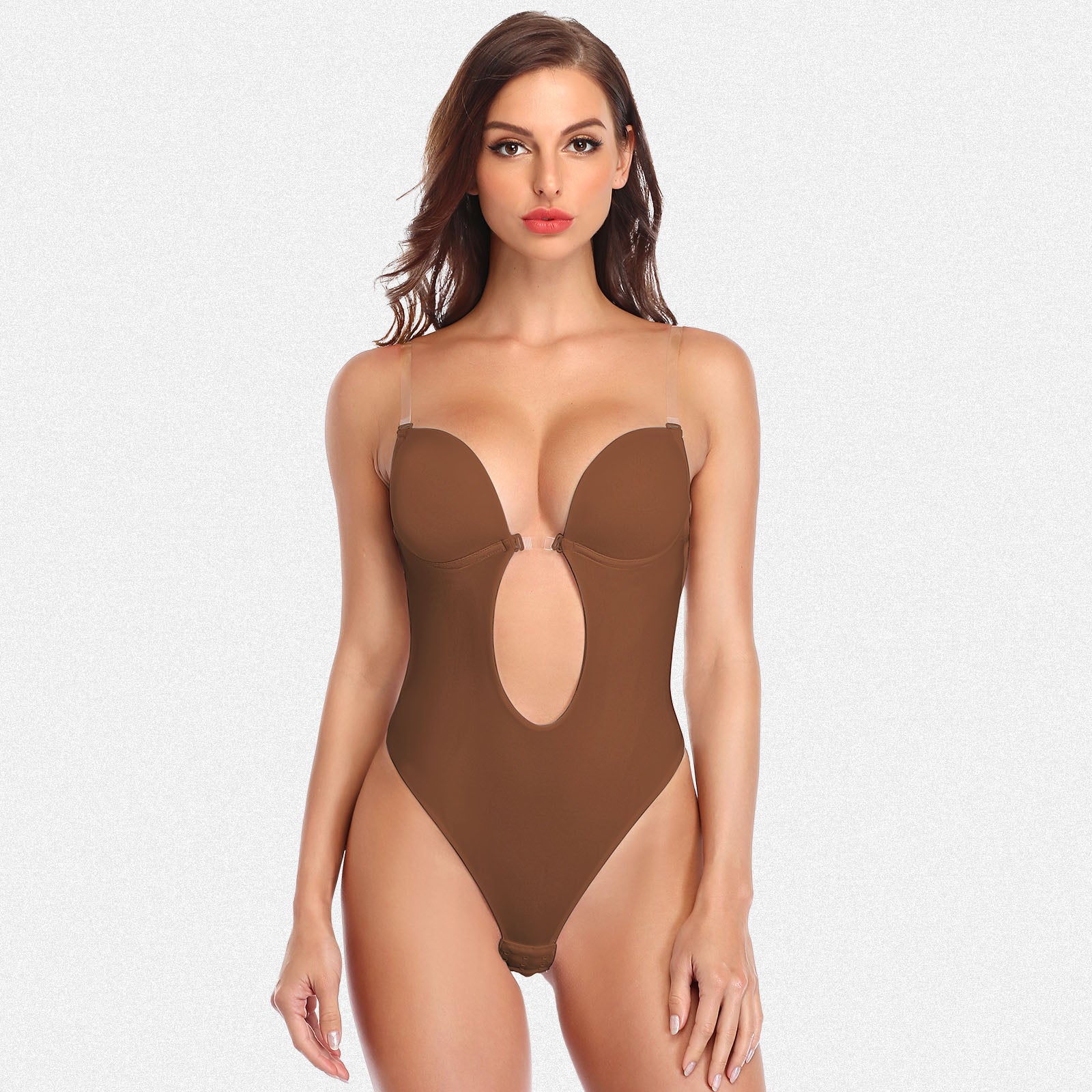 Designed with a moderate V-neckline and low-back cut, this seamless shapewear–finish bodysuit provides targeted abdominal support while maintaining a seamless shapewear foundation under clothing. Crafted from ultra-soft, breathable fabric, it delivers all-day comfort without visible lines.