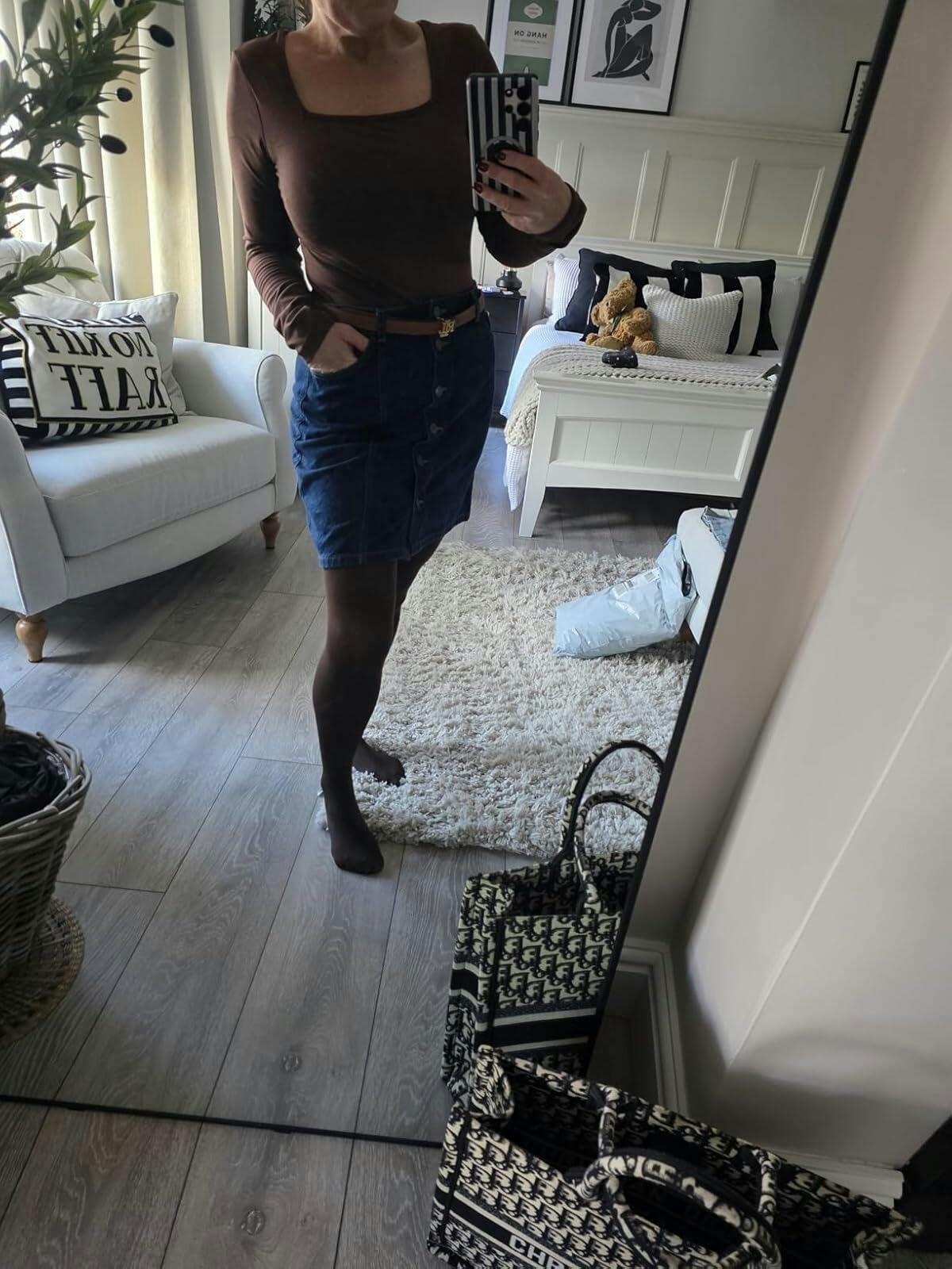 - The square neck design is elegant and feminine, showcasing the collarbone.