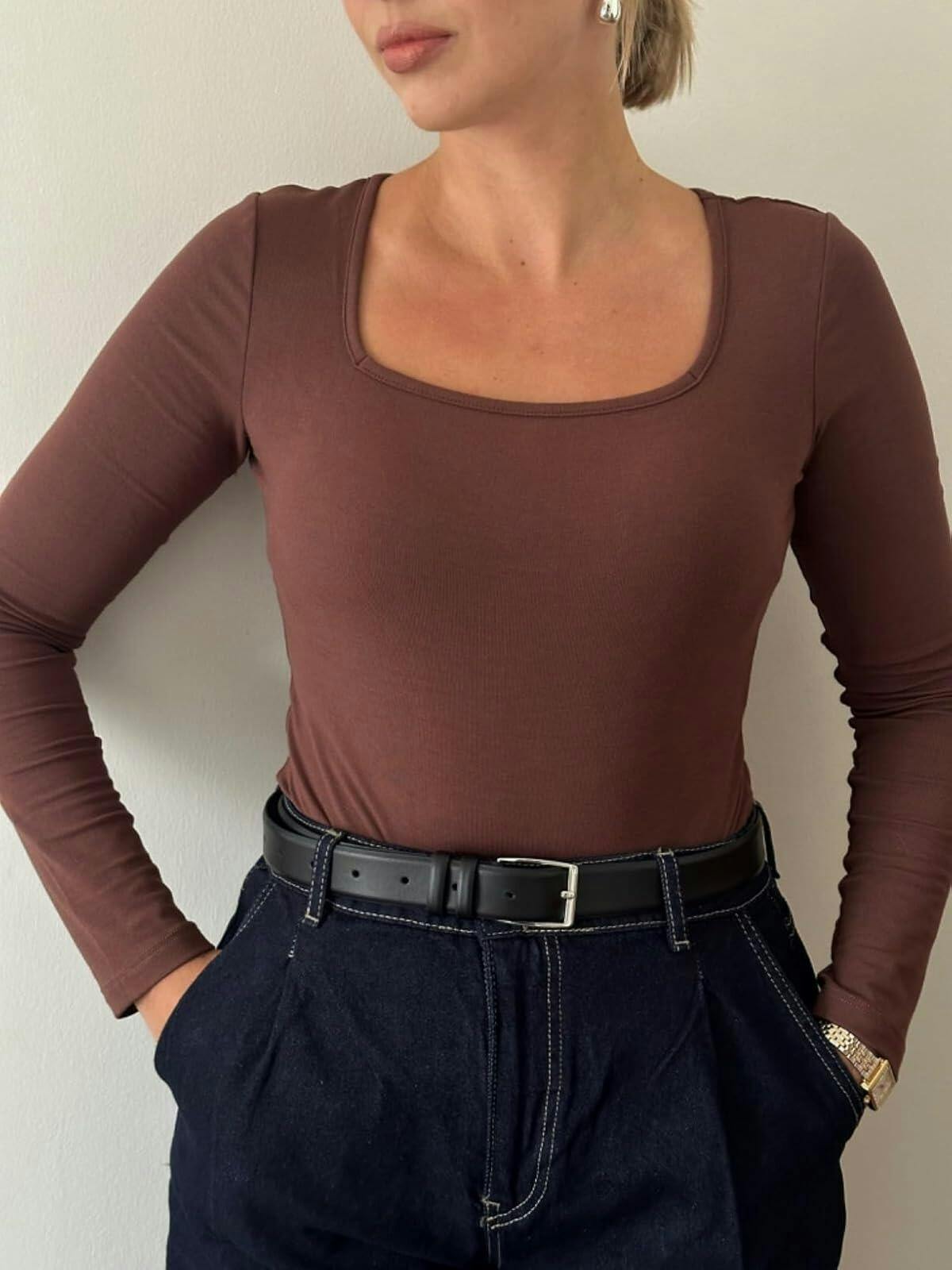 Discover versatile and stylish square neck bodysuits with a slim fit and long sleeves. These basic bodysuits are perfect for effortless and chic styling, adding a touch of elegance to any outfit. Ideal for layering or wearing on their own, these bodysuits are a must-have for any fashion-savvy individual.