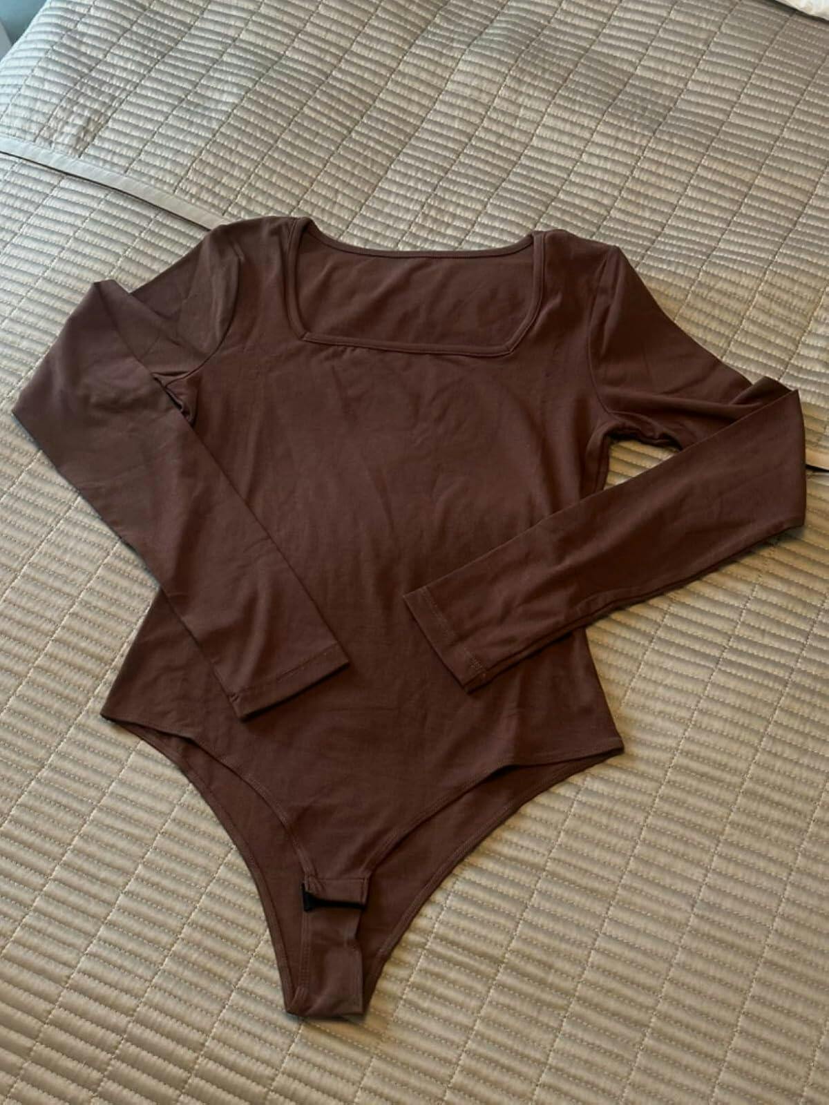 Shaperin Square Neck Long Sleeve Bodysuit Top